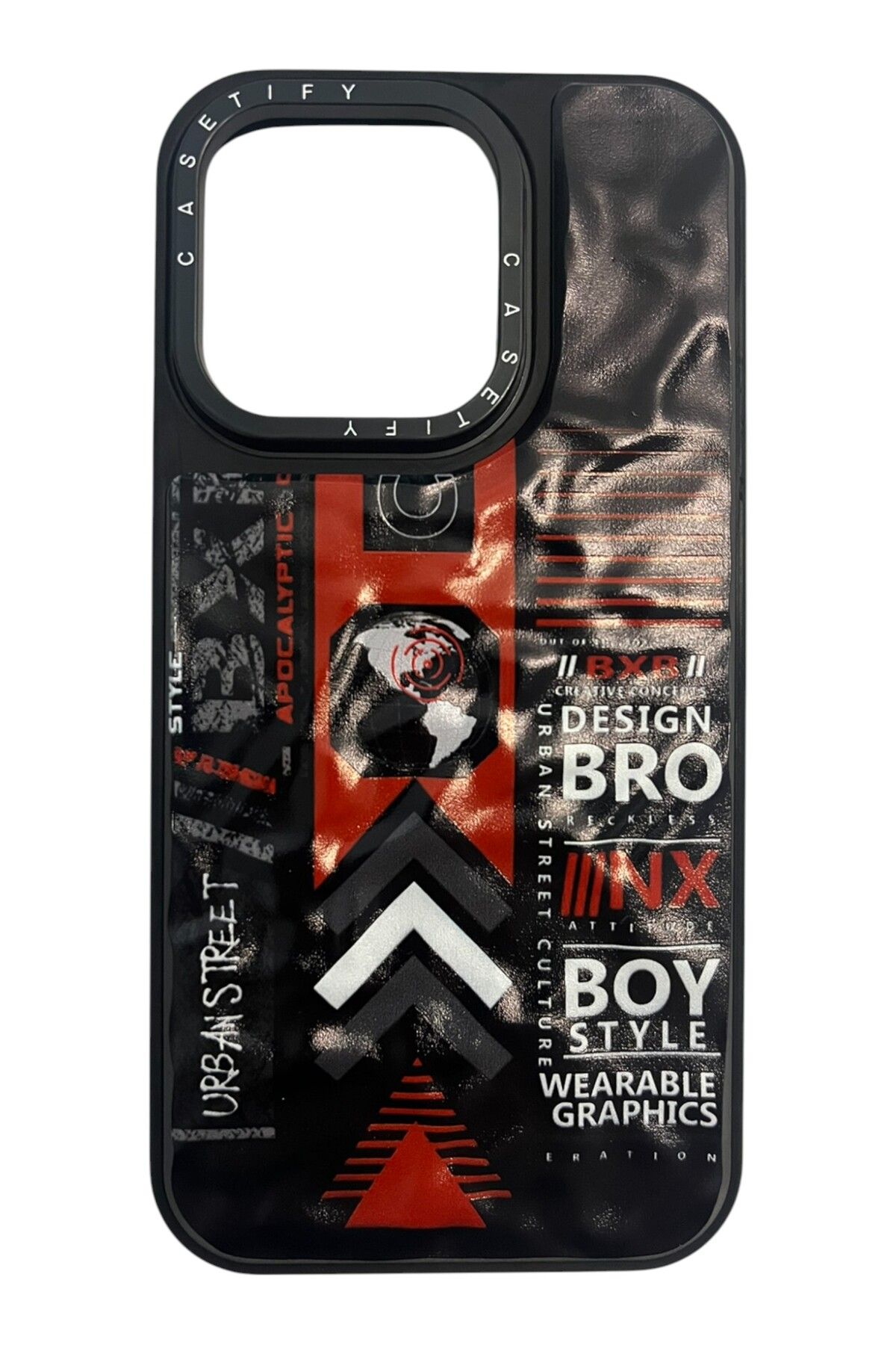İPhone 14 Pro Siyah Urban Street Baskılı Kabartmalı Kılıf