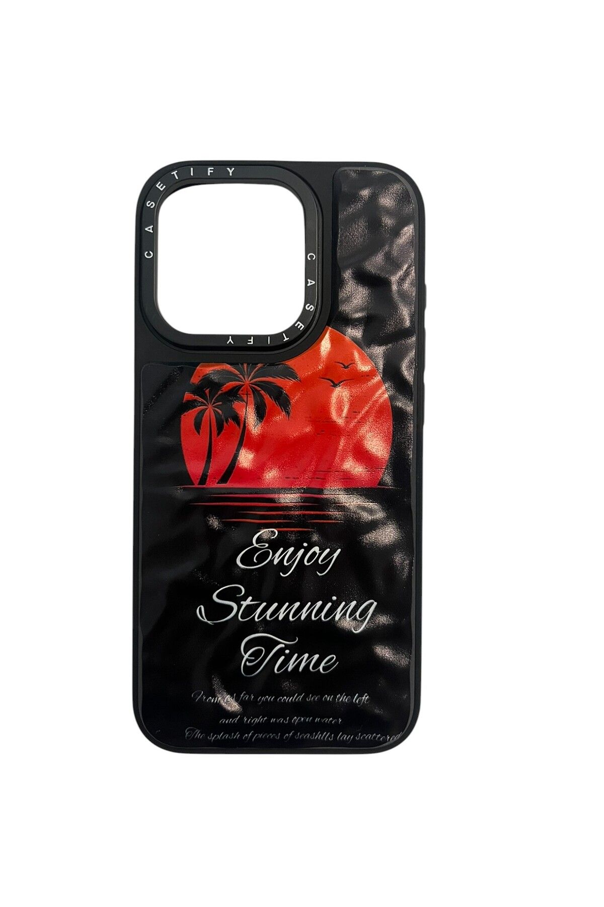 İPhone 15 Pro Siyah Enjoy Stunning Time Baskılı Kabartmalı Kılıf